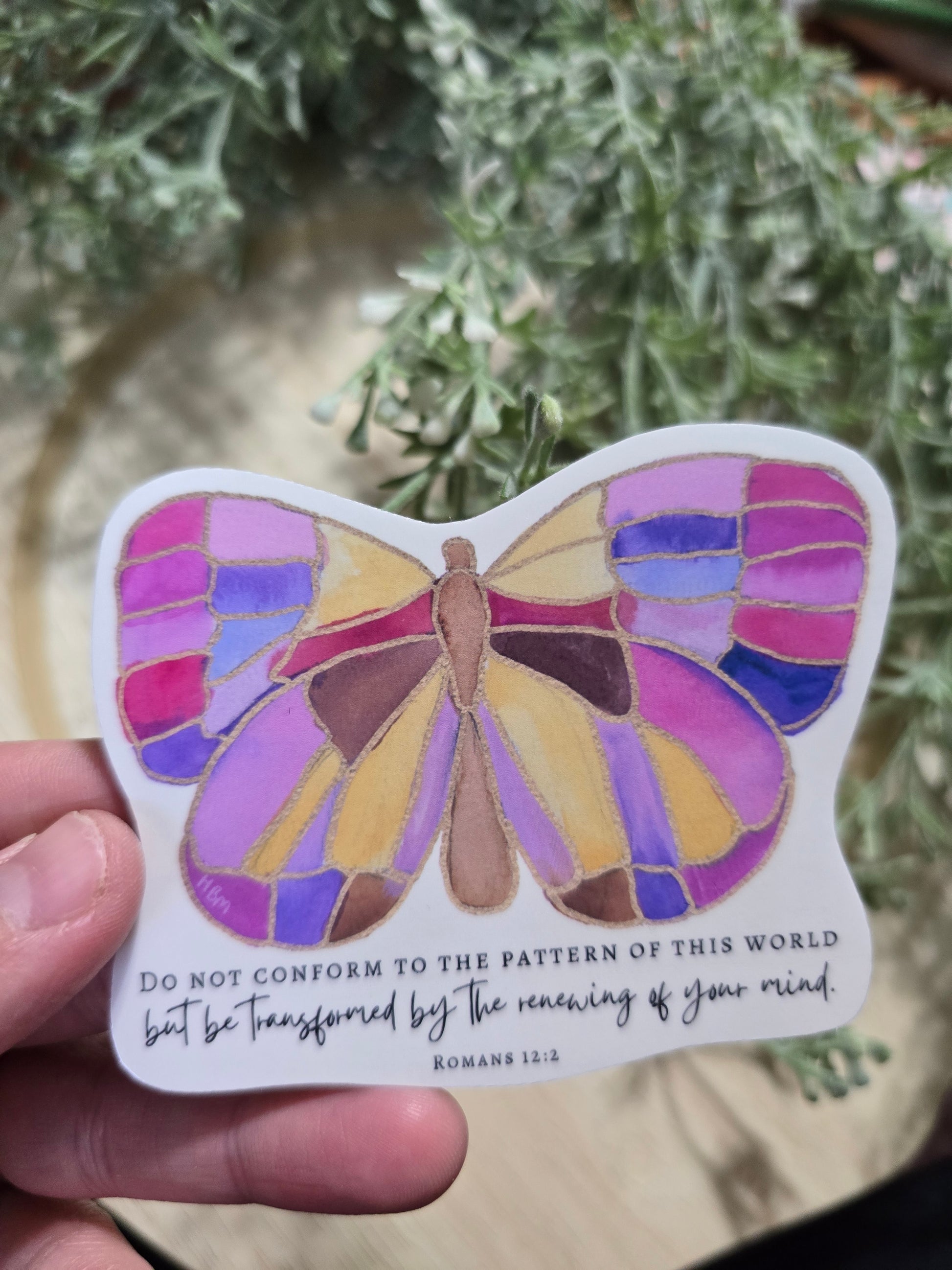 Be Transformed Stained Glass Butterfly. Artwork Vinyl Waterproof Sticker.