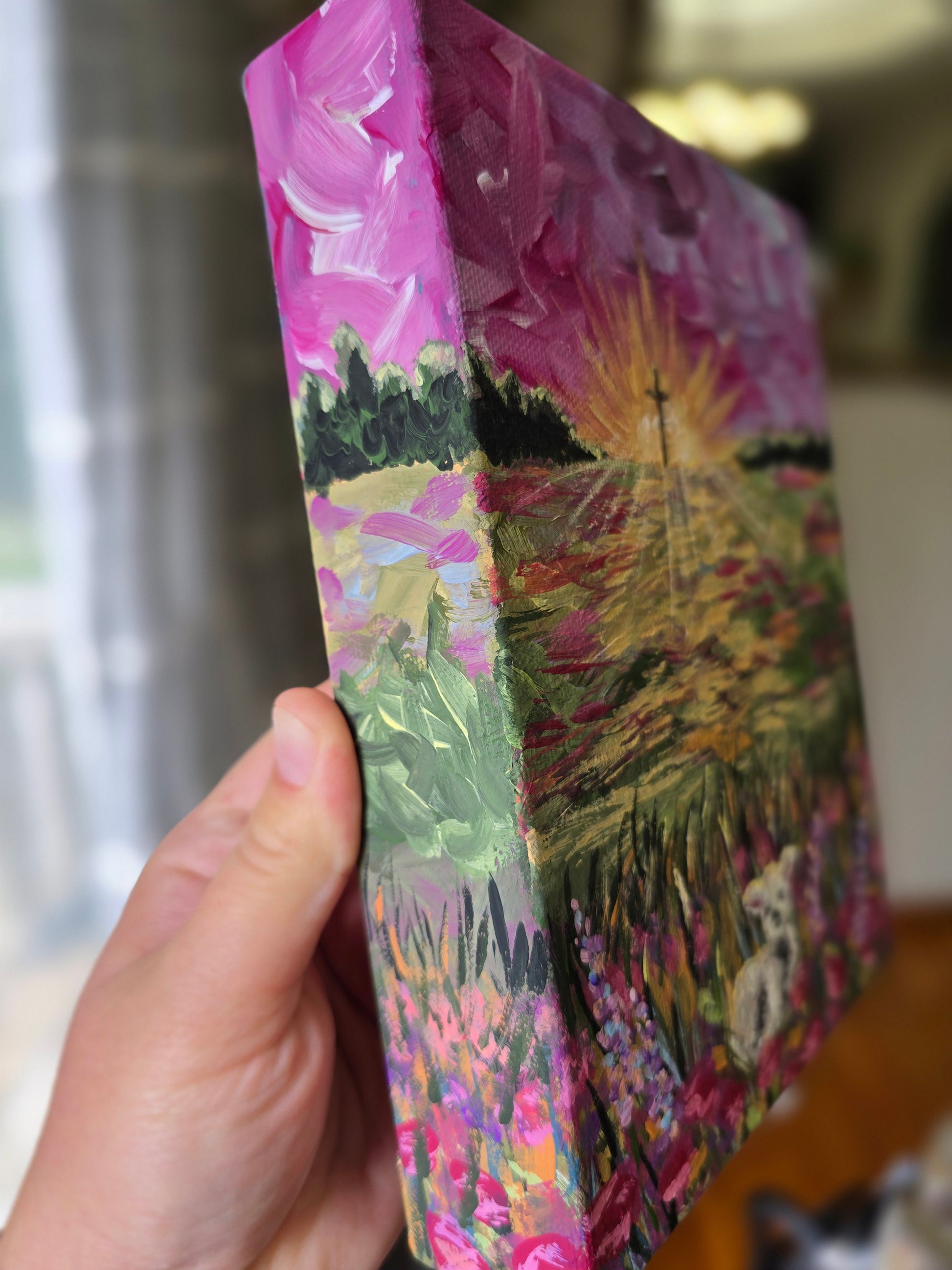 I have always loved painting landscapes and nature, as follower of Christ, that love has grown. I strive to share and express God's creation and the peace, love, joy, and light that He brings through each piece that I create.