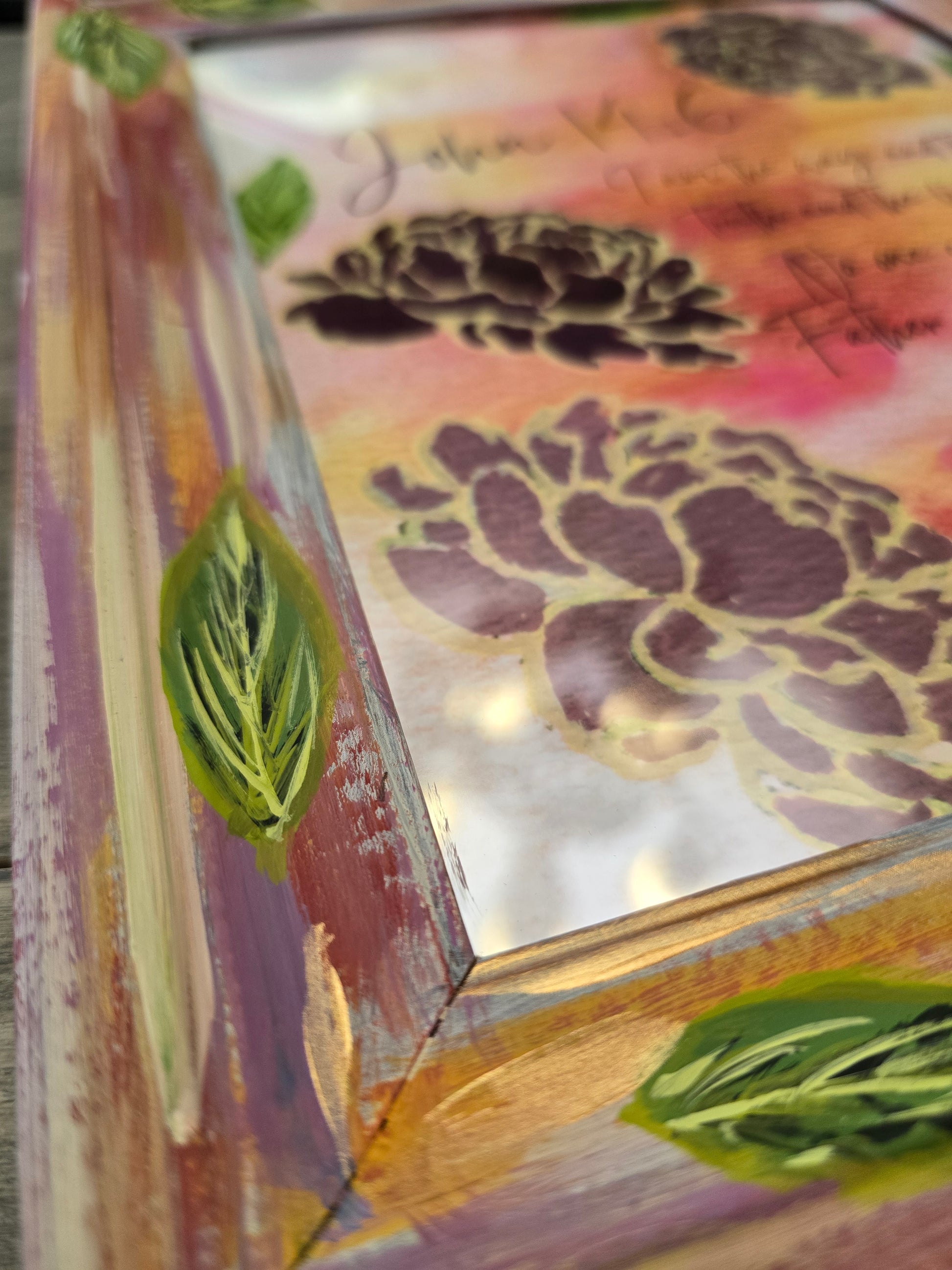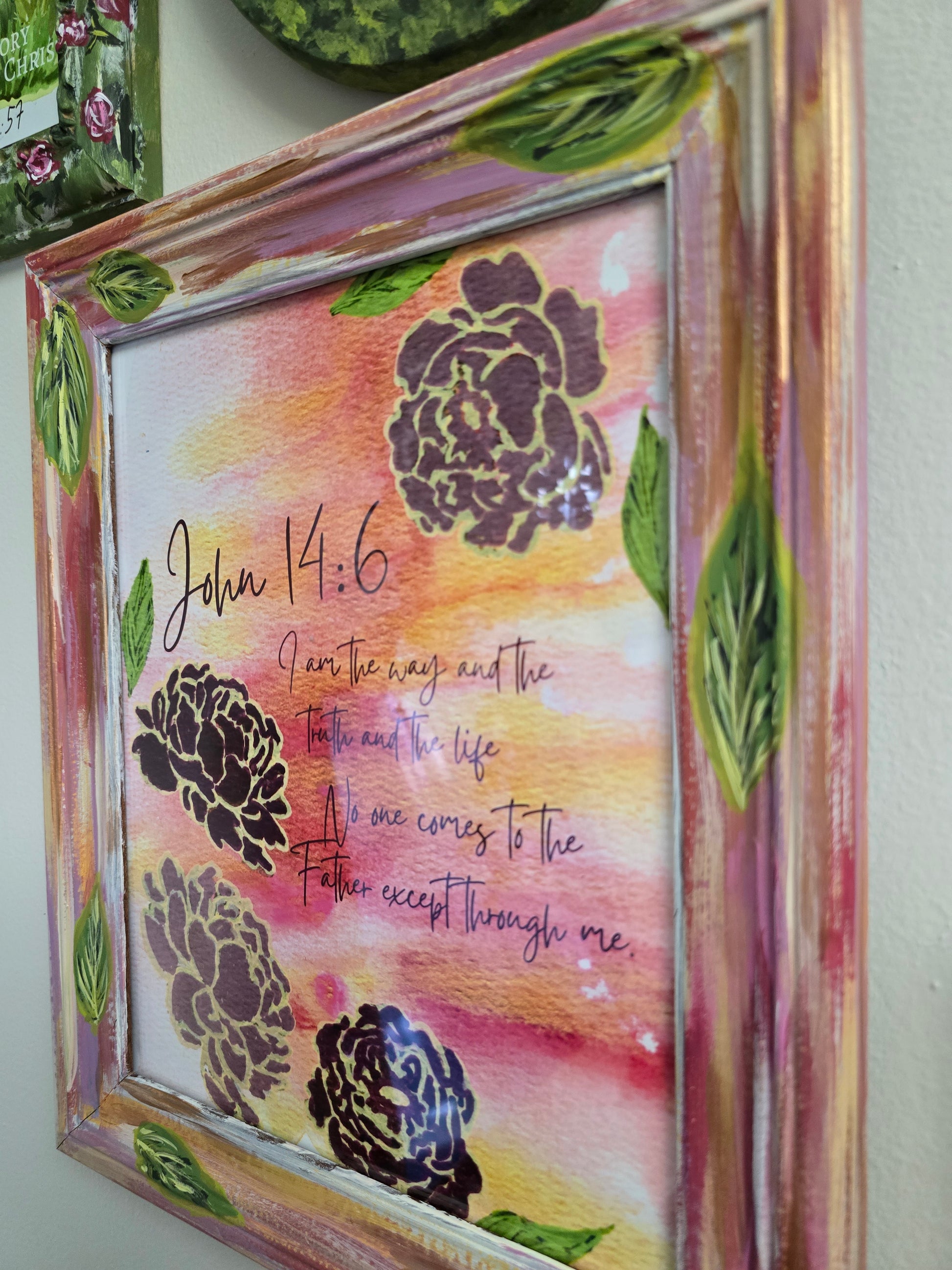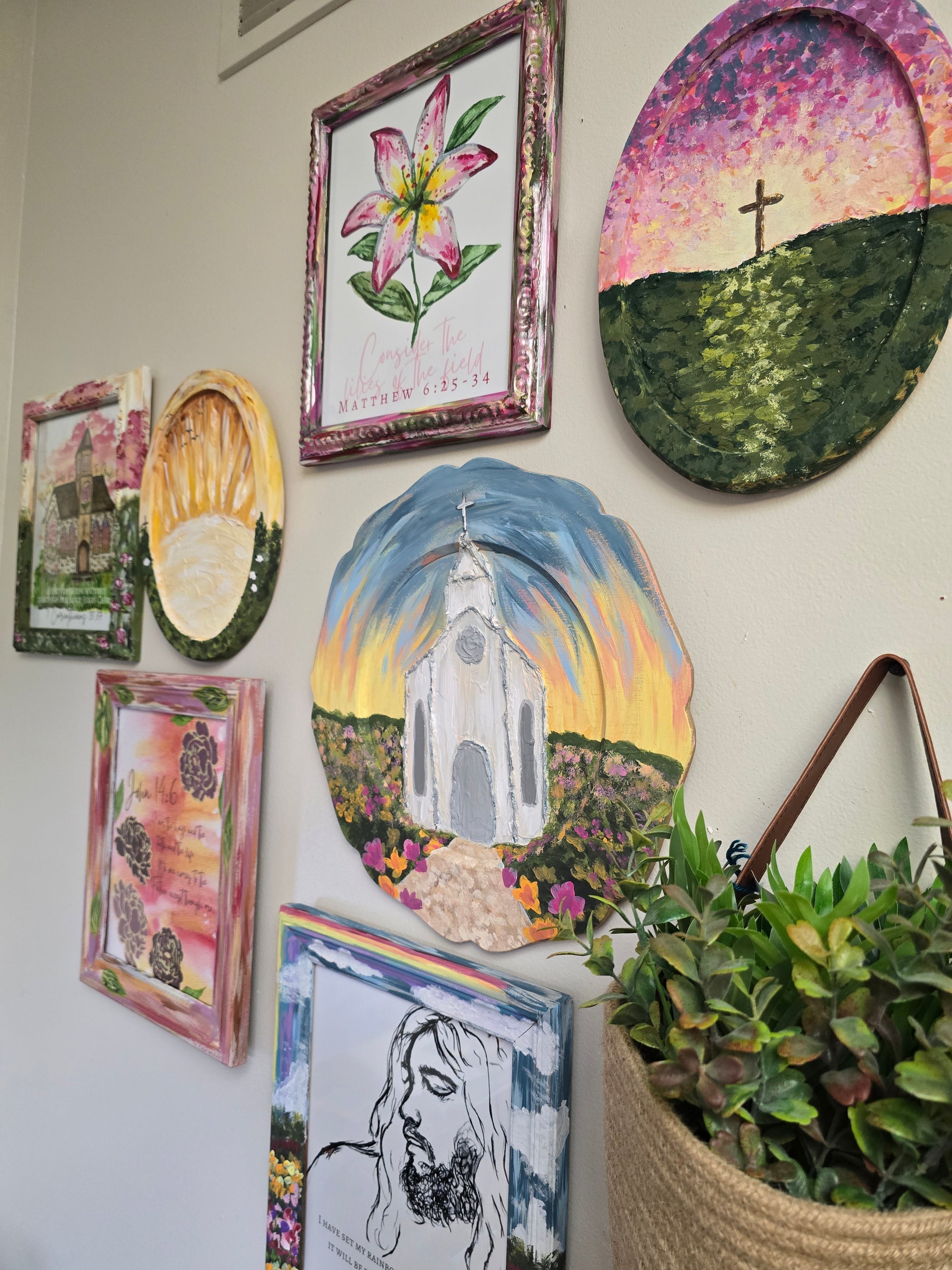 I first stumbled upon Honey Bee Mine through a Facebook ad only a couple of hours before this auction closed, and I was instantly captured by this beautiful butterfly painting! 🩷 It somehow felt perfectly like "me," and when I noticed the wings were painted to look like stained glass and it was titled "Be Transformed," I fell even more in love with it 😍 I instantly knew where I'd hang it, and I was thrilled when I won the auction! It was packaged really well and even came with some lovely stickers, a DaySpring journal page with an encouraging word, and a beautiful business card 💝 I also didn't realize this until I received it, but the back is sealed really nicely and has the Lord's prayer printed on it! What a wonderful touch! I highly recommend this seller. Thank you so much, Caitlin!! 🥰