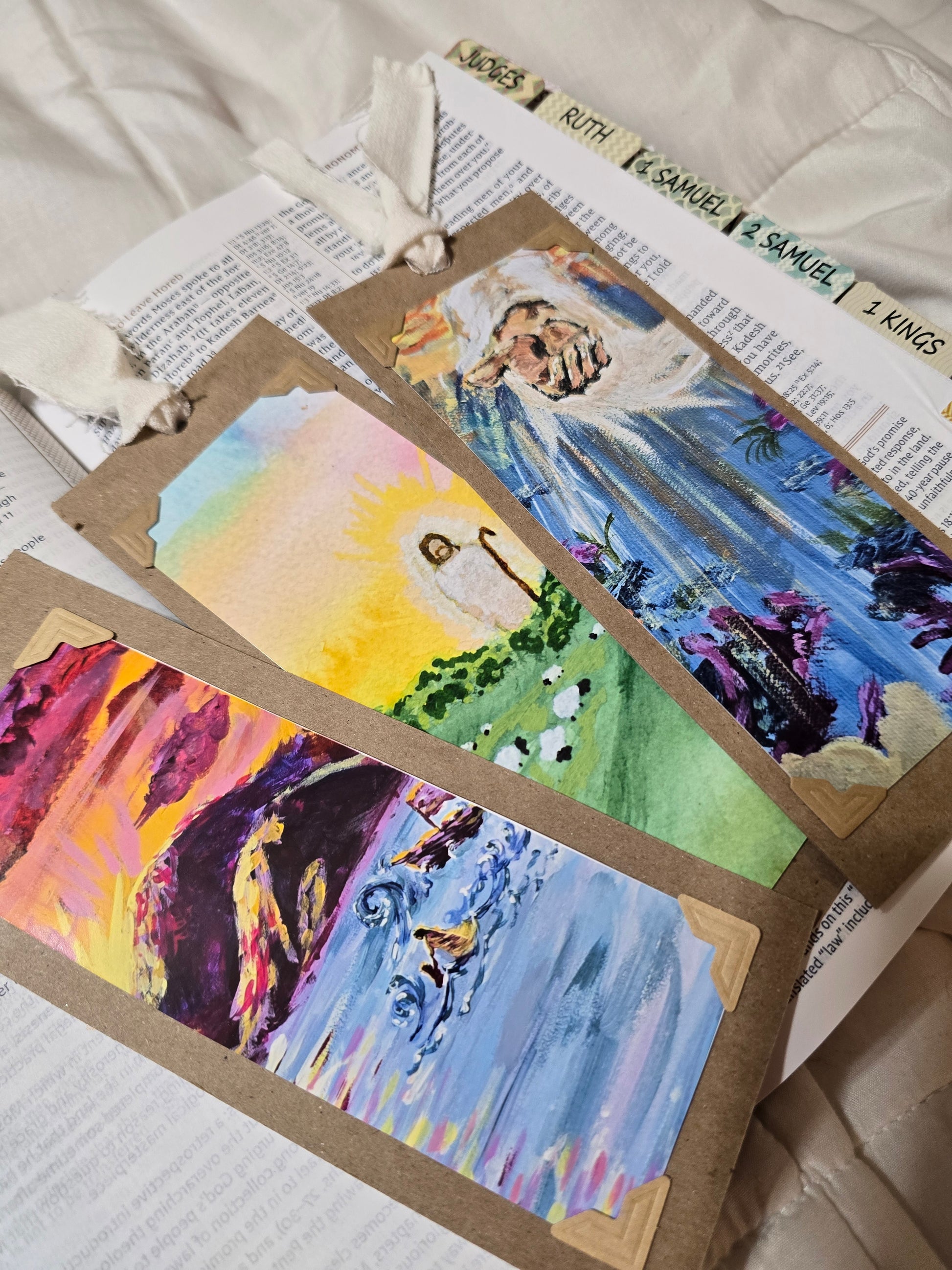 Size- Bookmarks are 2.5in x 7in, and made using a thick and durable cardstock.